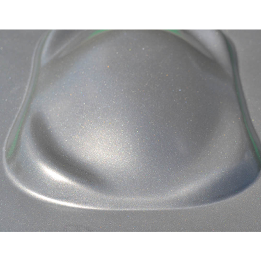 An eye-catching silver with heavy silver metallic flakes. A bit darker than our Silver Metallic. Single stage, no clear needed.