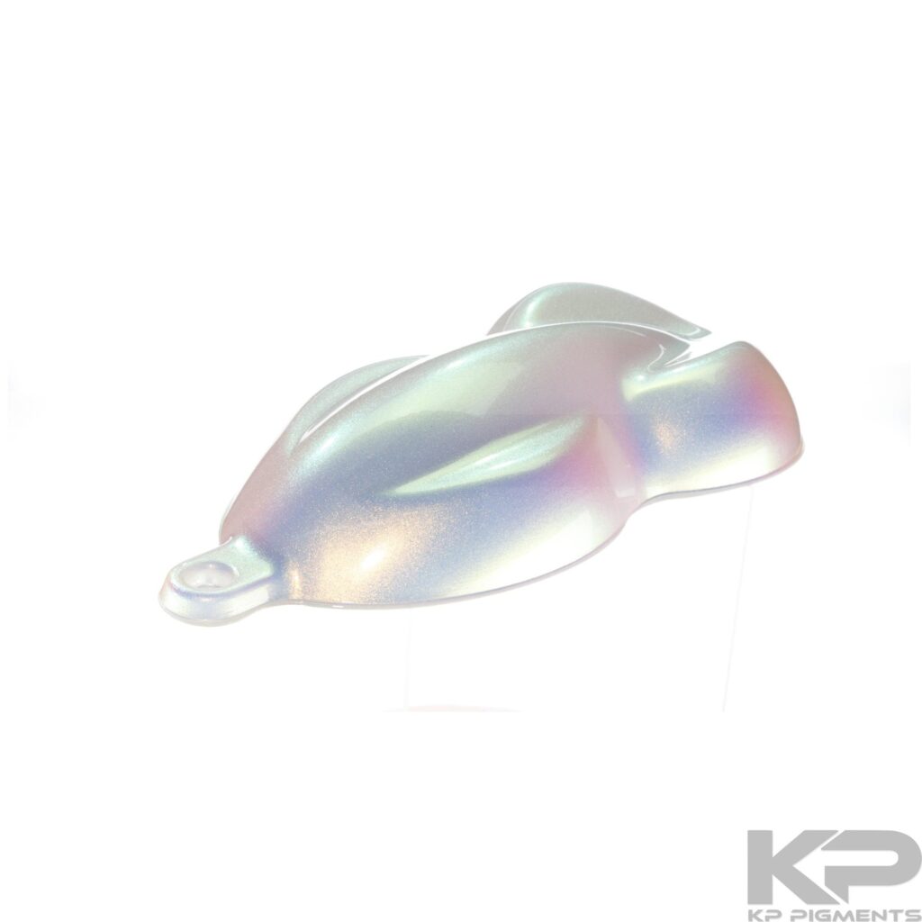 The most vivid and chromatic colorshift/ color travel pigments on the market. Unbelievable hiding ability and chroma; shifts between: Yellows to Golds to Greens to Blues. Finishes to a super fine pearlescent sheen. Pictured over a black base coat. Use .25 – 3% Ratio of KP Pigment to Clear.
