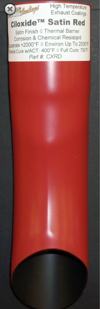 Ciloxide is a family of ceramic coatings capable of providing extremely high levels of thermal protection in very thin films. It is designed to be applied primarily to exhaust system components and other parts subject to high temperature and movement/flexing. When properly applied, Ciloxide will withstand substrate temperatures of over 2000�F. In addition, the direct flame will not cause delamination as long as substrate temperatures do not exceed 2000�F. Ciloxide will handle environmental temperatures of up to 2000�F. Due to its unique ceramic nature, it also functions as a very effective thermal barrier with reduced thermal radiation characteristics. Ciloxide dries to the touch after approximately one hour and partially cures at 400�F for one hour with the use of Activator (ACT). The coating cures to a very hard surface with excellent adhesion, lubrication, and release properties.