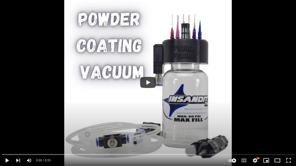 How does this awesome mini vac work? Well, simple. It comes “almost” fully assembled, ready for you to roll right out of the box! All you need to do is provide your compressed air source and air hose, connect to the supplied 1/4″ air line fitting, adjust the included air control valve to your liking, and get to work! The powder reclaimer has strong magnetization on the back side, allowing you to simply and easily attach it to your powder coating booth, or if you don’t have a metal booth, you can simply attach a steel plate to the wall for the magnets to work on. We recommend regulating air supply to a maximum of 60 psi.
