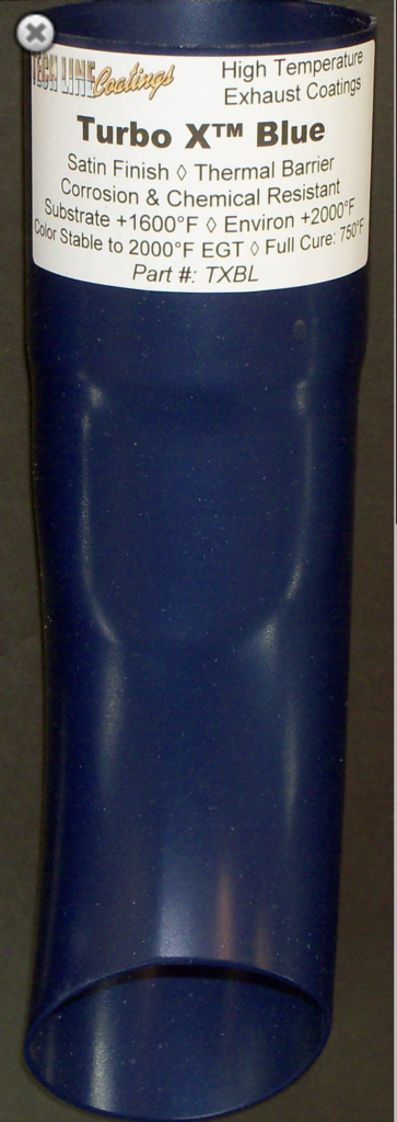 Turbo X is a silicone ceramic coating designed to be applied primarily to exhaust components. When applied to exhaust systems, Turbo X will remain color stable at exhaust gas temperatures up to 2000�F. Due to its unique ceramic nature, the coating also functions as a very effective thermal barrier, with reduced thermal radiation characteristics. The coating cures to a very hard, durable surface with excellent adhesion. Turbo X is designed to be cured in an industrial oven. Corrosion and chemical resistance is only achieved after the coating reaches a full cure.