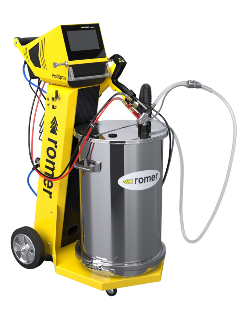 Designed for flexible powder application, the Profi-Spray H features a hopper dolly stand paired with a fluidization hopper to improve powder flow and consistency. By “fluidizing” the powder, it ensures smoother delivery and more stable spray performance. Ideal for shops running a variety of powders while maintaining efficiency and control.