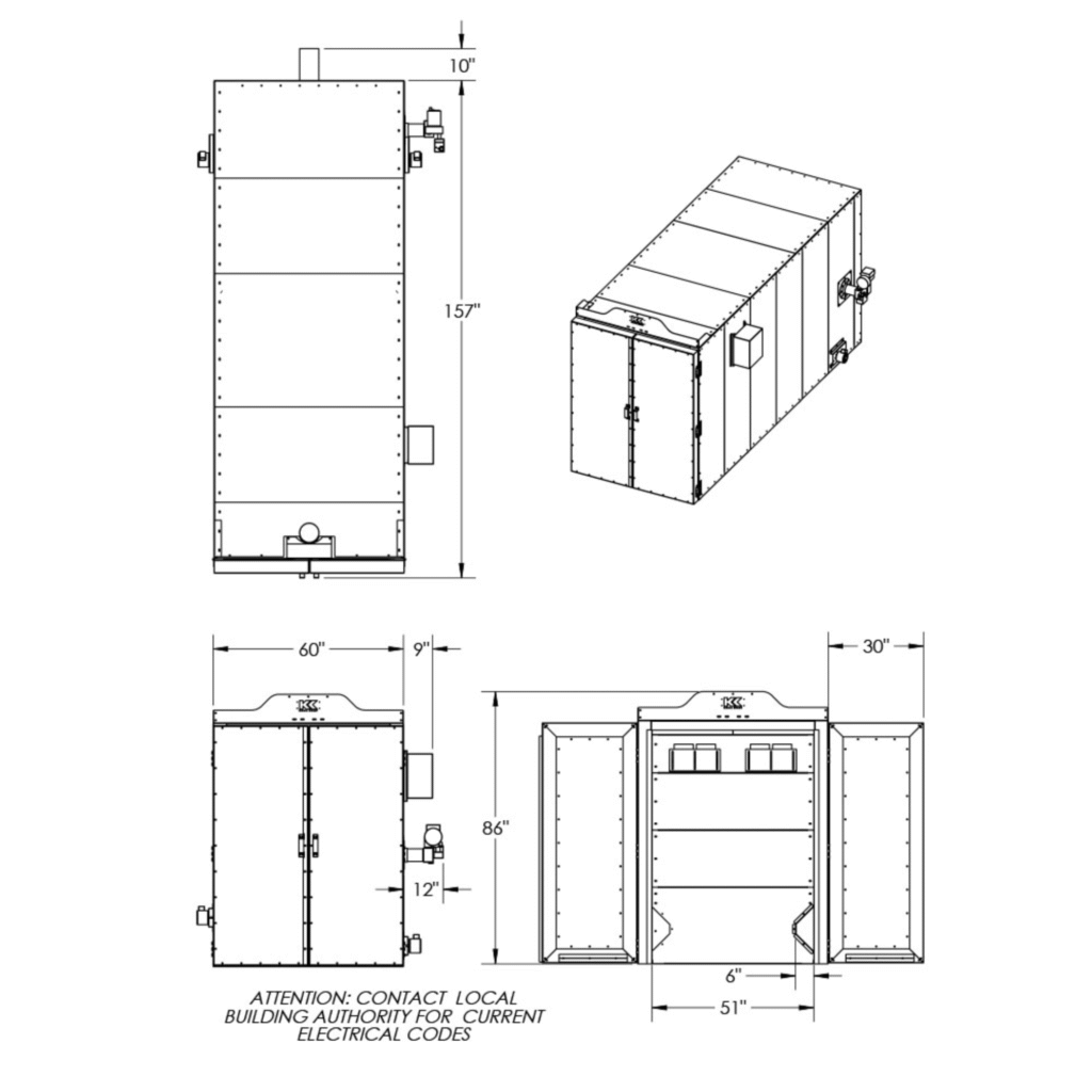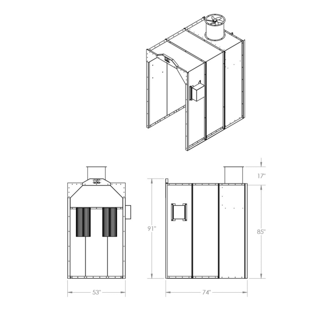 The quality of our Kool Koat ovens and spray booths surpasses the industry marketplace. Kool Koat uses premium materials and components throughout our systems. These systems are manufactured using 12, 16, and 18 gauge G90 galvanized US Steel which is precisely cut and bent with our state-of-the-art AMADA Laser and Brake Press. The electronic components throughout these systems are UL listed / UL Compliant for reliability. Contains 24V controls.