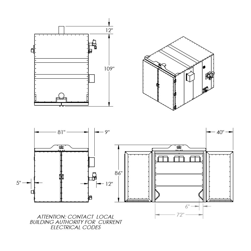The quality of our Kool Koat ovens surpasses the industry marketplace. Columbia Coatings uses premium materials and components throughout our ovens. Our systems are manufactured using 12, 16, and 18 gauge G90 galvanized US Steel which is precisely cut and bent with our state-of-the-art AMADA Laser and Brake Press. The electronic components throughout these systems are UL listed / UL Compliant for reliability. Contains 24V controls.