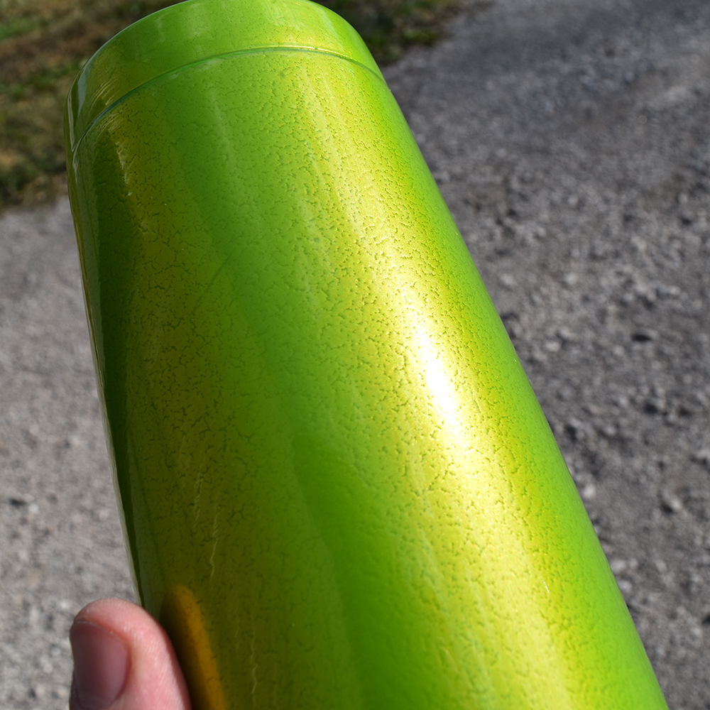This is a bright, lime green coating with a vein-like texture underneath.