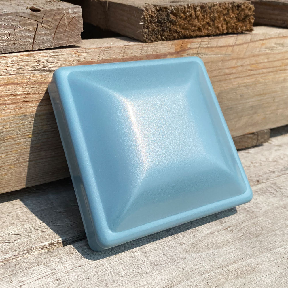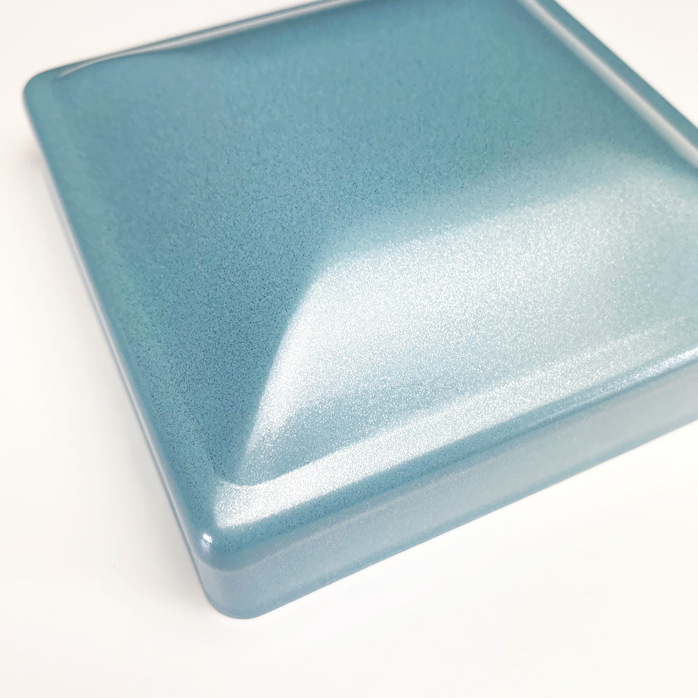 This is a cool light blue coating with fine silver/light blue metallic flakes. This product requires a clear top coat.