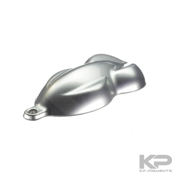 A highly chromatic masstone Silver alumium pigment with substantial hiding ability and coverage. Finishes with a chrome like metallic sheen. Pictured over a black base coat. Use .25 – 3% Ratio of KP Pigment to Clear.