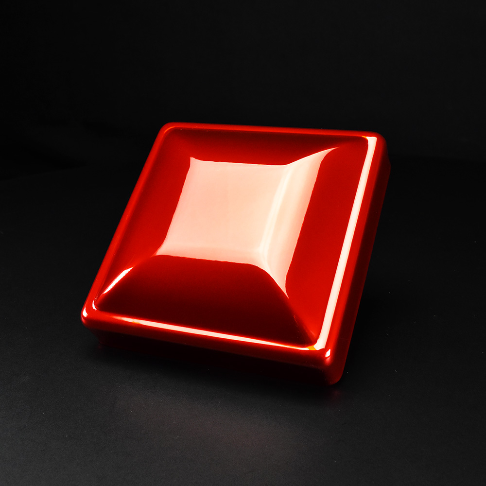 This is a vibrant red candy/translucent coating with a smooth, high gloss finish. This red has a subtle hint of orange compared to our Candy Red Translucent.