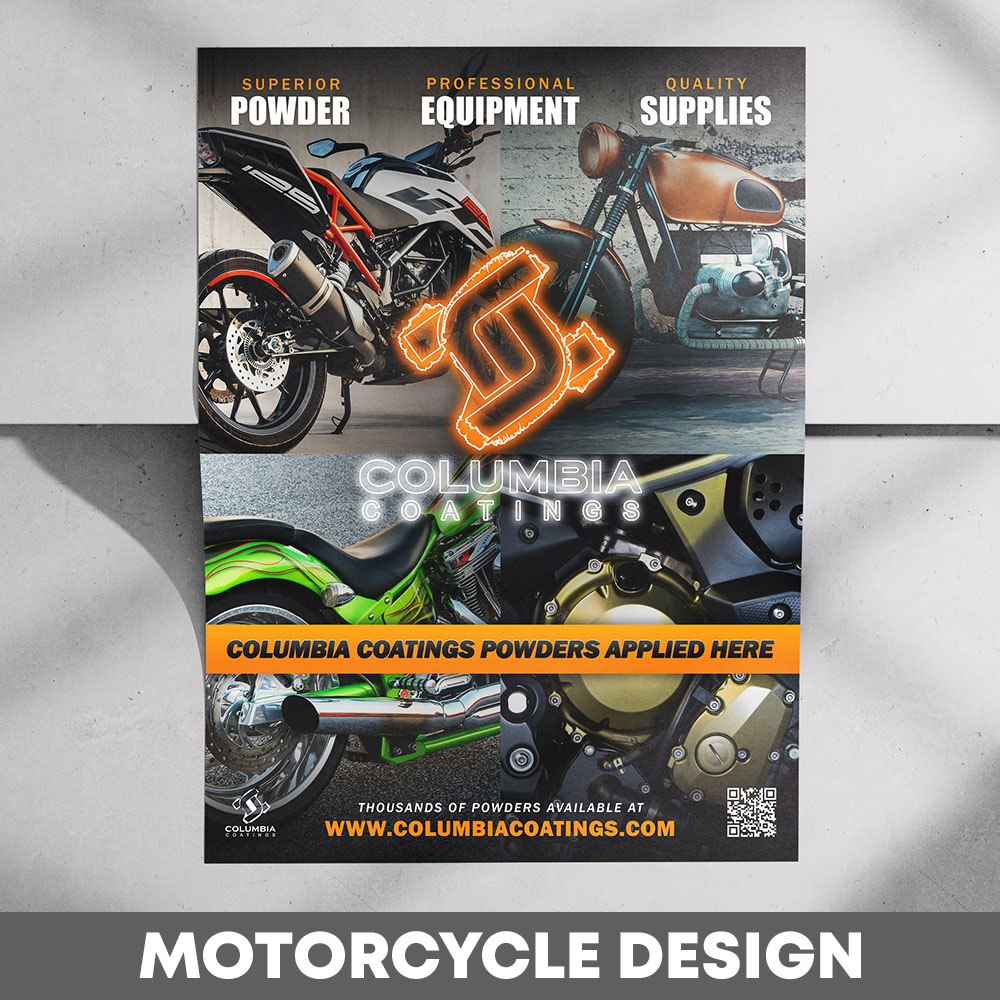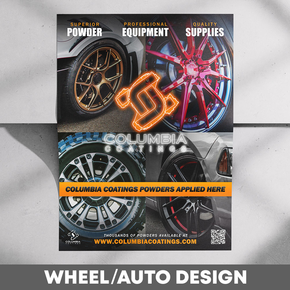 Represent your favorite powder coating supplier with your very own “Columbia Coatings Powders Applied Here” poster! Whether you are a wheel and automotive shop, motorcycle shop, or agricultural equipment shop – we have the perfect poster for you!