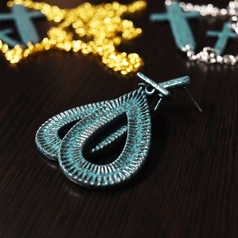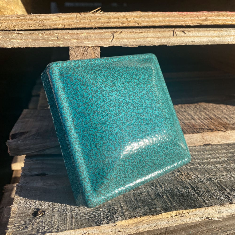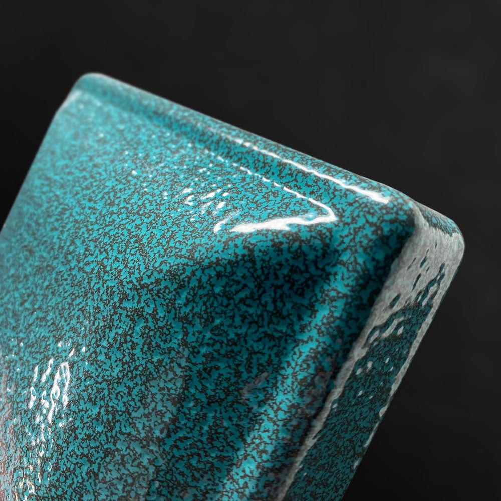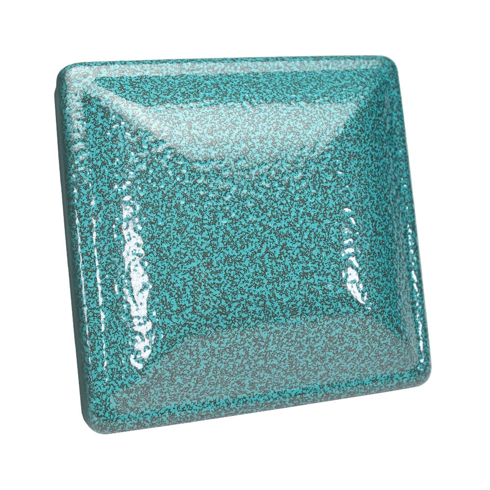 A high-gloss, turquoise blue vein-texture coating with copper-brown inset.