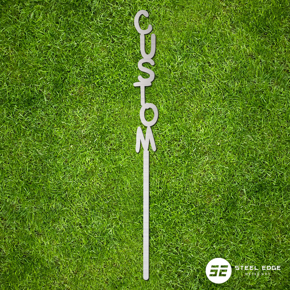 Customize your very own Garden Marker! Just enter the name you want to use in the text box (10 character max). All markers are between 1.3 and 1.5 inches wide. All markers have a stake that is 7 inches tall. Full height of the markers vary with amount of letters used. Individual letters are between 1.3 and 1.5 inches tall. All text is uppercase. No hanging holes included for this product.