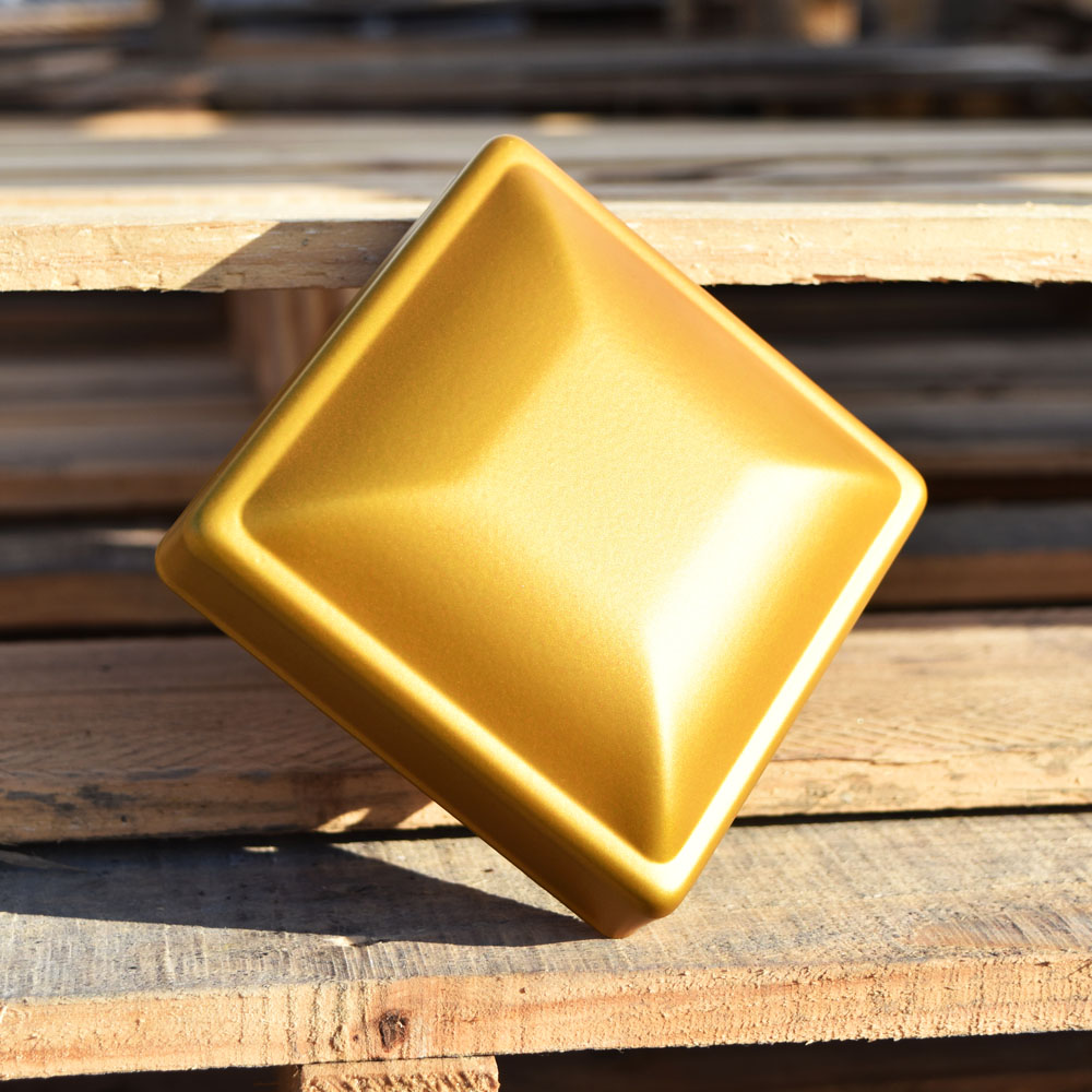 A deep, vibrant gold coating with very fine metallic flakes and a smooth finish.