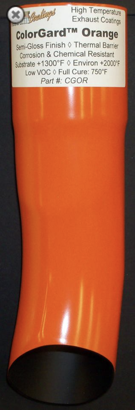 ColorGard is a ceramic reinforced coating designed to be applied to automotive exhaust such as Cars, Trucks, Off Road Vehicles, Agricultural, Motor Cycles and much much more. Due to unique ceramic nature, the coating also functions as a very effective thermal barrier while reducing thermal radiation. Keeps your components surrounding coated parts cooler. The coating cures at a very hard super durable surface with excellent adhesion. Most ColorGard coatings can be applied over PrevCor (PCI), CermaSSteel (MCS), or High Heat Base Coat Black (HHBK) to increase corrosion resistance which withstands higher substrate temperature and increases thermal barrier functions