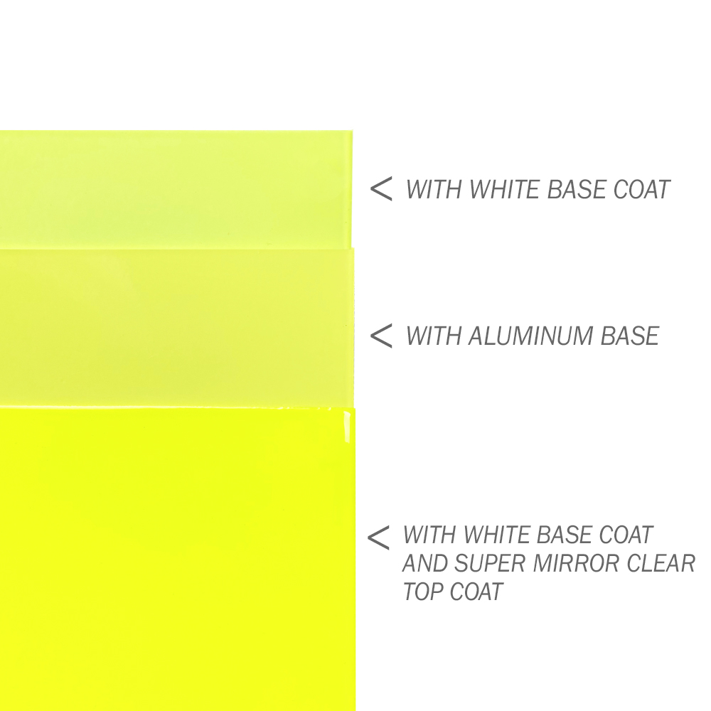 We also recommend using Base White as a base coat to enhance the color of fluorescents and neons. This is not a requirement, but it does help make the color “pop”.