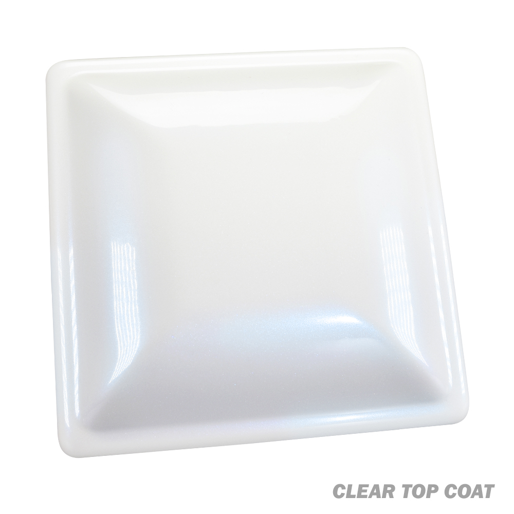 This is an ultra-smooth, high gloss clear coat with a heavy amount of brilliant blue metallic pearls that have a ghostly effect over a white base coat. These pearls are subtle in the shade and have a brilliant sparkle in the sunlight and direct light. Pictures and videos don’t do this color justice, so order a swatch to see this coating in person.
