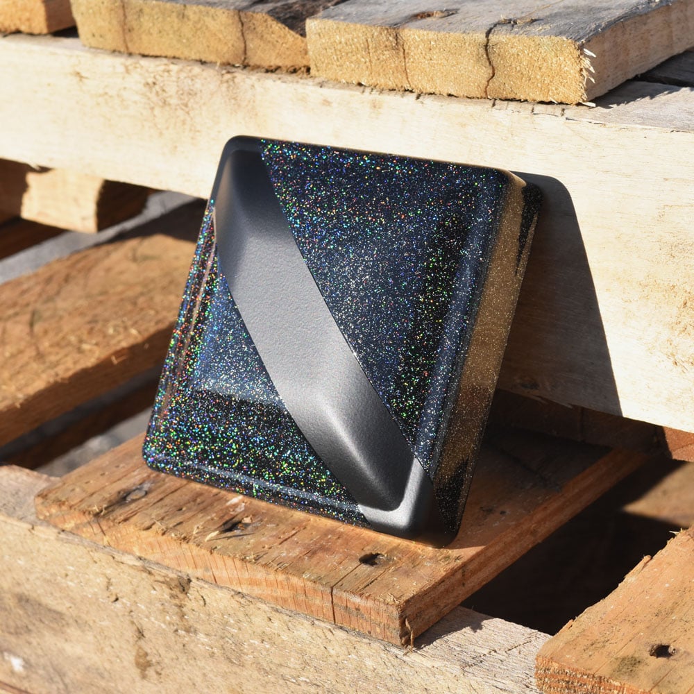 This is a high gloss clear coat with a heavy amount of intense, rainbow color shifting metallic flakes. This rainbow effect is most vibrant in the sunlight, but it also pops in low-light environments.