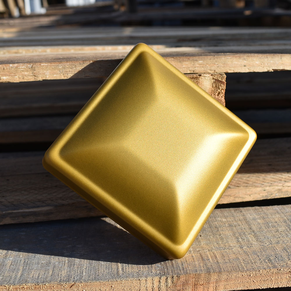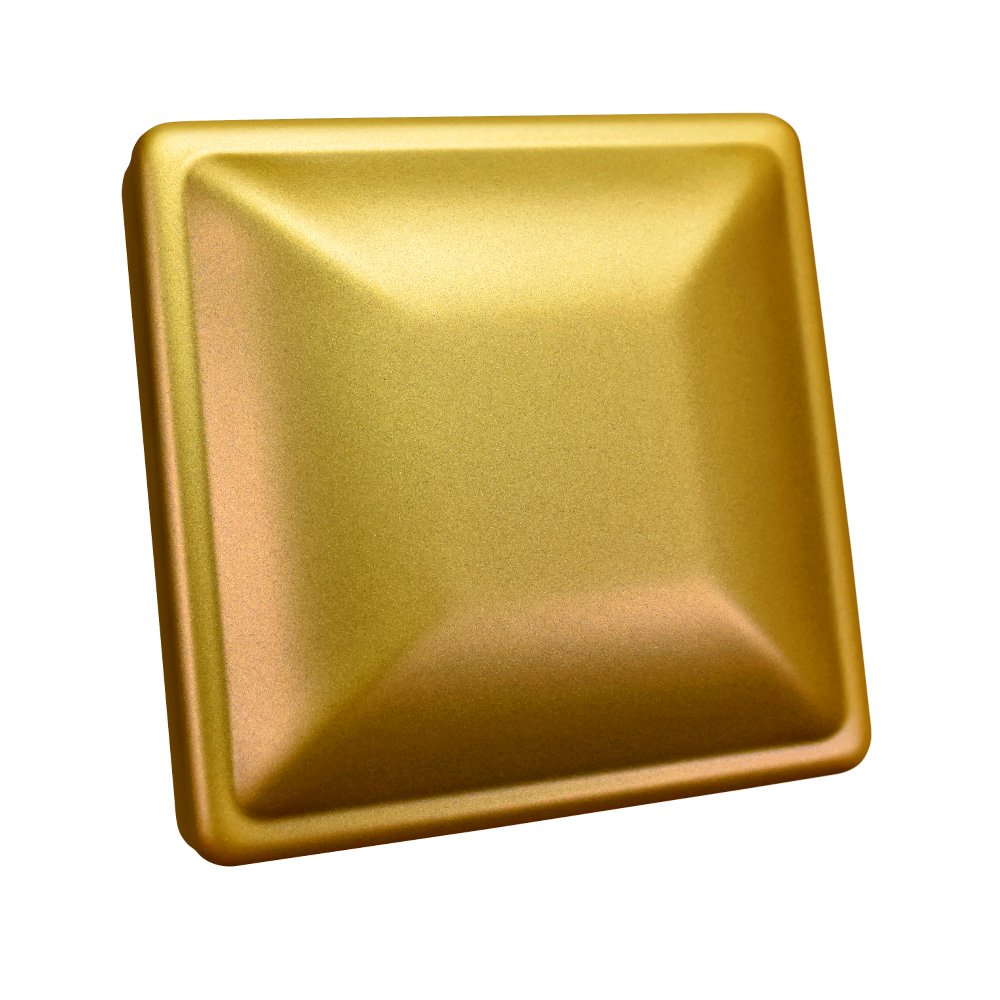 A rich, light gold coating with very fine metallic flakes and a smooth finish.