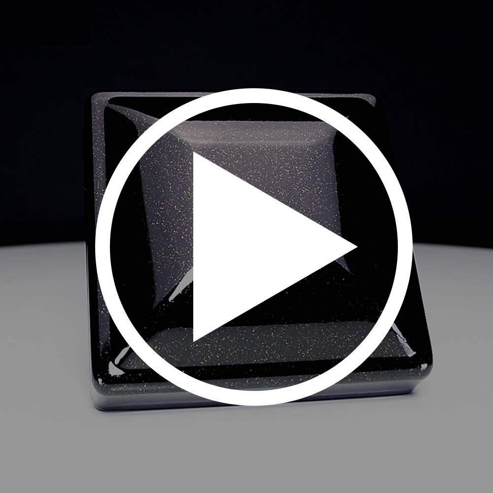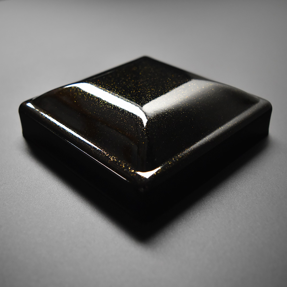 This is a high gloss, deep black coating with a heavy amount of gold metallic flakes. Pictures and videos don’t do this coating justice, so order a swatch to see it in person!