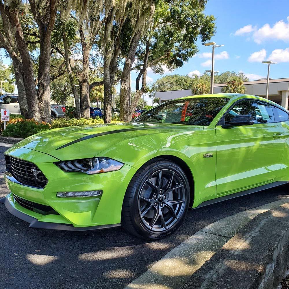 This is a bright lime green coating with a smooth, high-gloss finish. Matched to Ford’s Grabber Lime paint color.