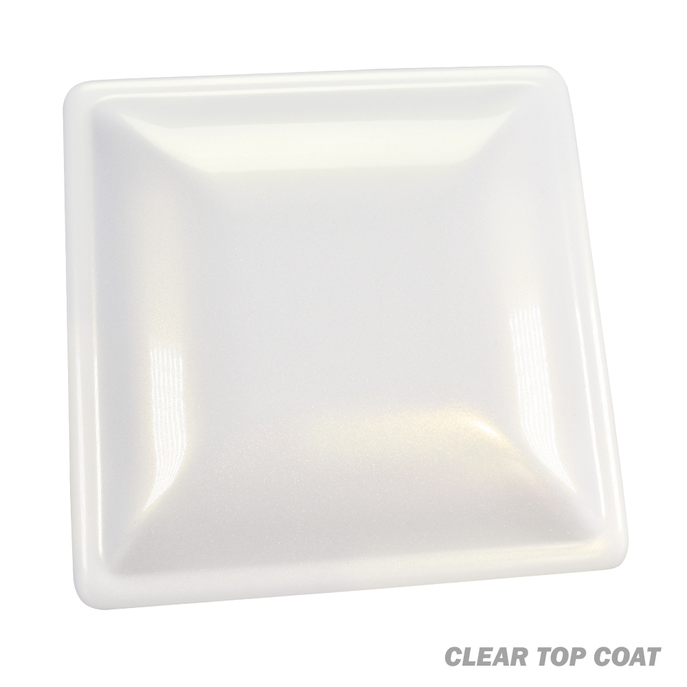This is an ultra-smooth, high gloss clear coat with a heavy amount of brilliant gold metallic pearls that have a ghostly effect over a white base coat. These pearls are subtle in the shade and have a brilliant sparkle in the sunlight and direct light. Pictures and videos don’t do this color justice, so order a swatch to see this coating in person.