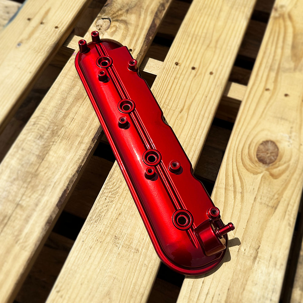This is a deep, vibrant cherry red illusion coating with a smooth finish.