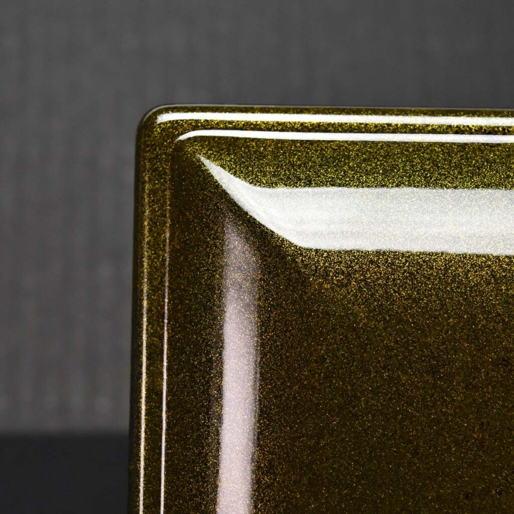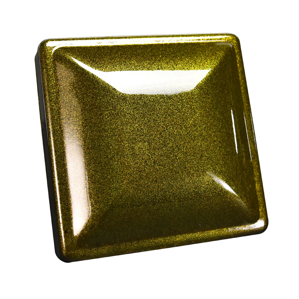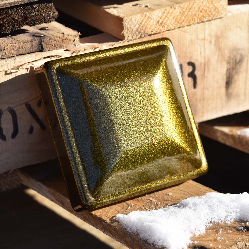 This is a deep, rich gold coating with hints of green and metallic flakes.