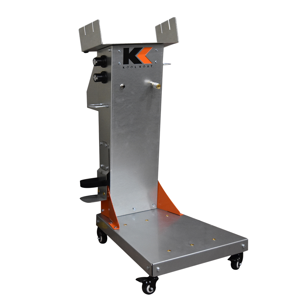 The Industrial Gun Stand is an ideal place to mount your Kool Koat or Hyper Smooth gun. It provides a great way to move your gun system around your workspace with ease.