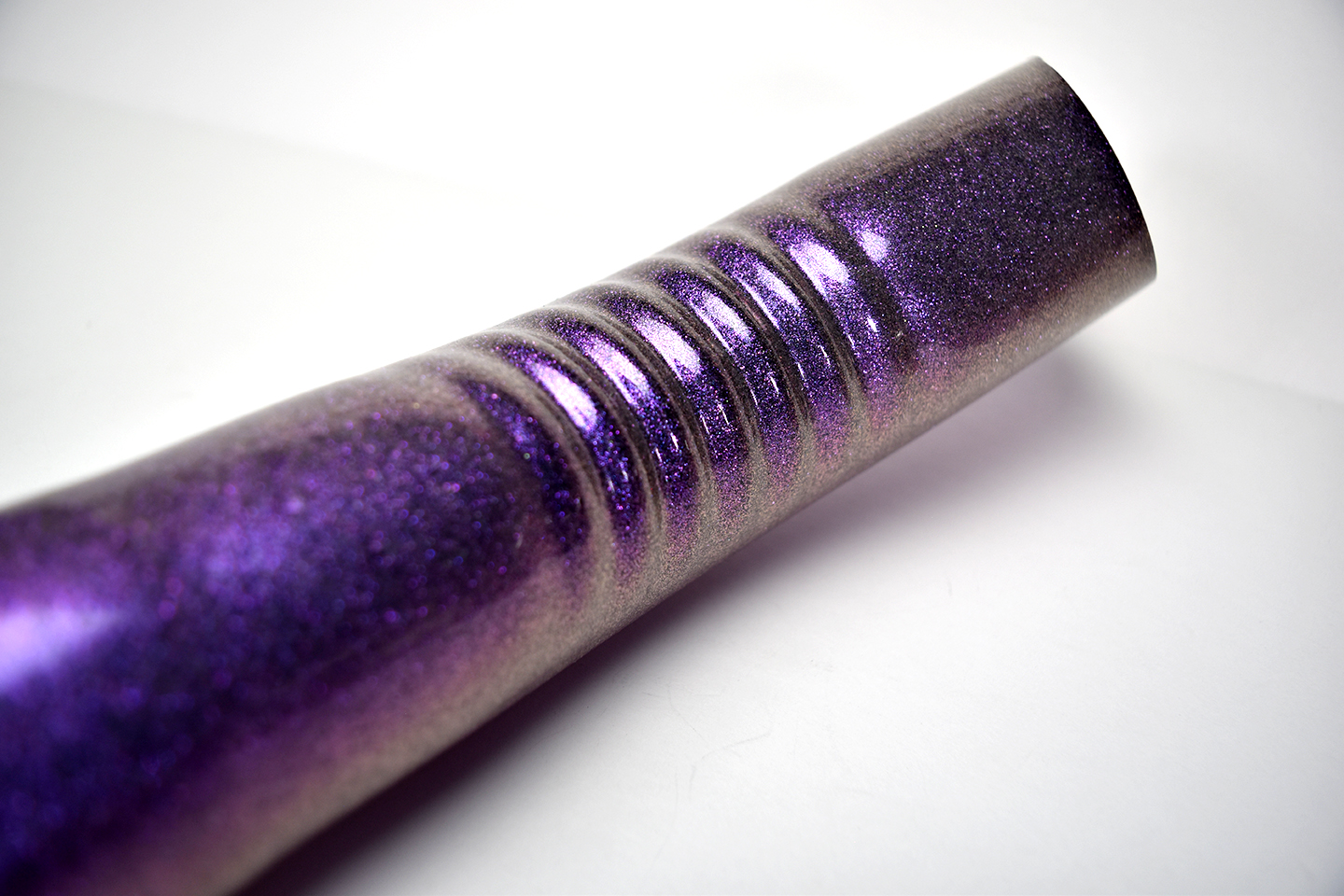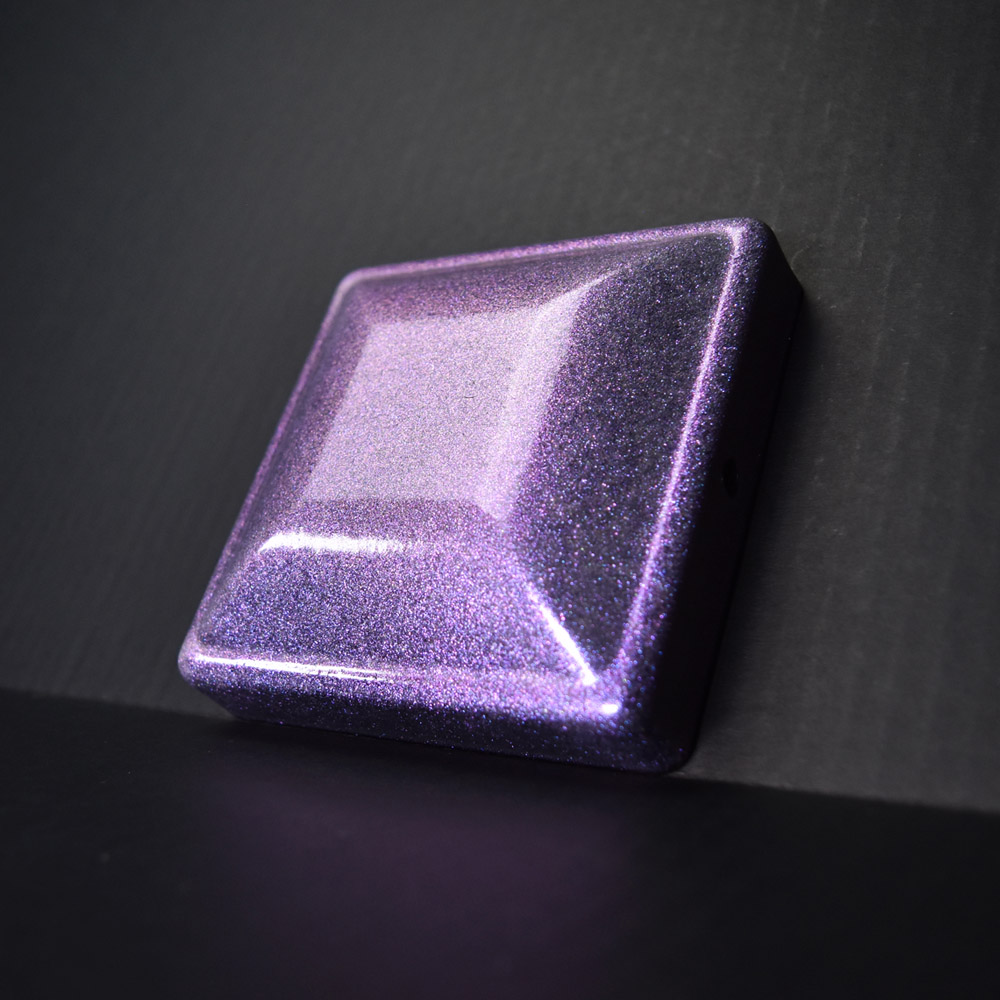 This is a high gloss clear coat with a heavy amount of color-shifting, metallic flakes. These vibrant flakes change between violet, blue, red, orange, and yellow.