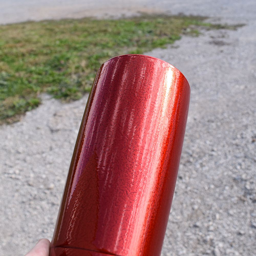 This is a deep red coating with a vein-like texture underneath.
