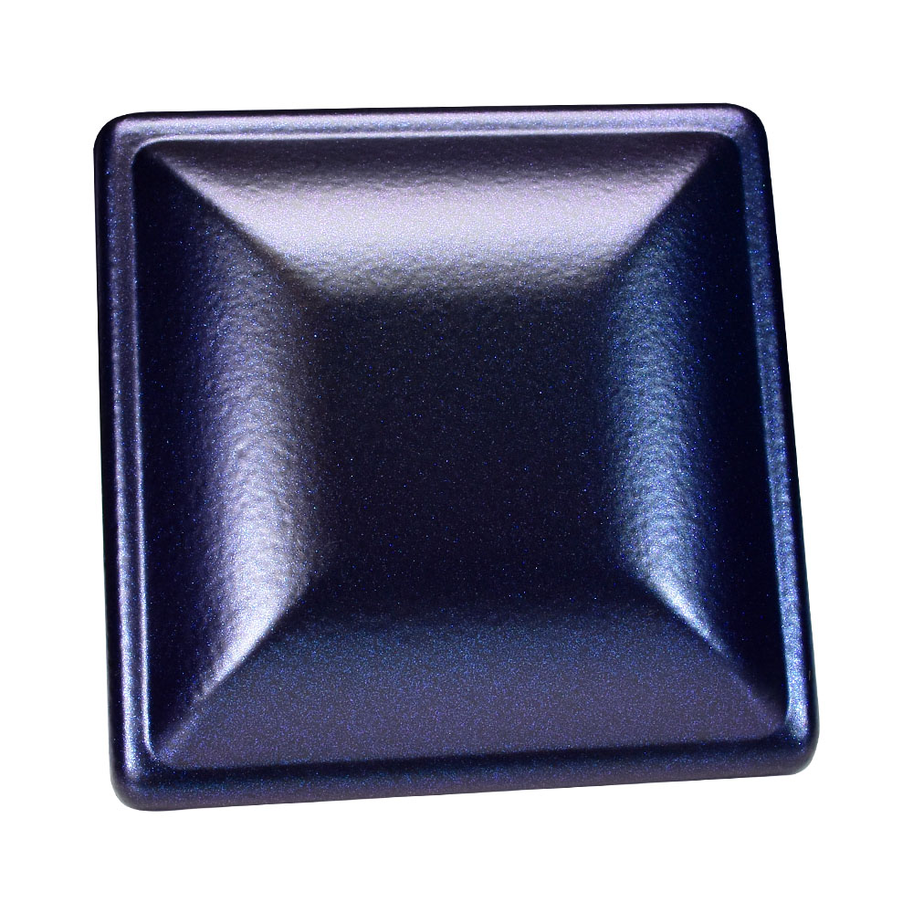 This is a beautiful black powder coating with fine chameleon/color shifting flakes, with a smooth low-gloss finish. These color shifting flakes change colors between blue, violet, and purple. Pictures and videos don’t do this color justice, so order a swatch to see this coating in person.