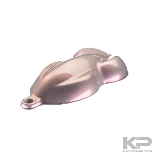 A fine pink pigment with a smooth pearlescent sheen. Pictured over a light grey base coat. Use .25 – 3% Ratio of KP Pigment to Clear.