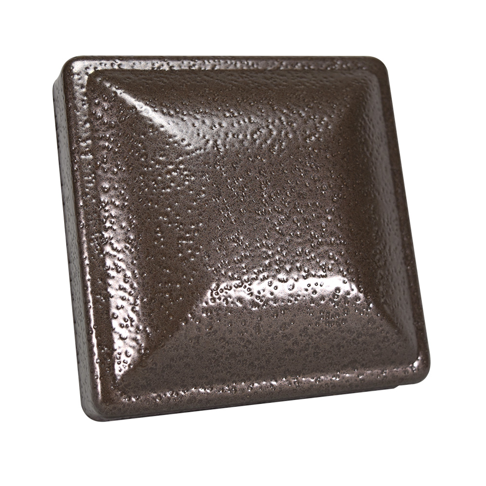Mid gloss, dark bronze. It does not require a clear topcoat and is excellent for both interior and exterior conditions.