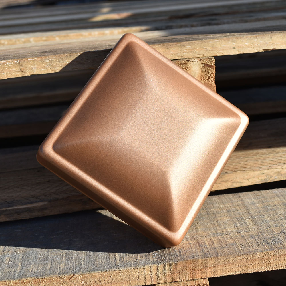 A light brass coating, with a hint of peach color, very fine metallic flakes, and a smooth finish.