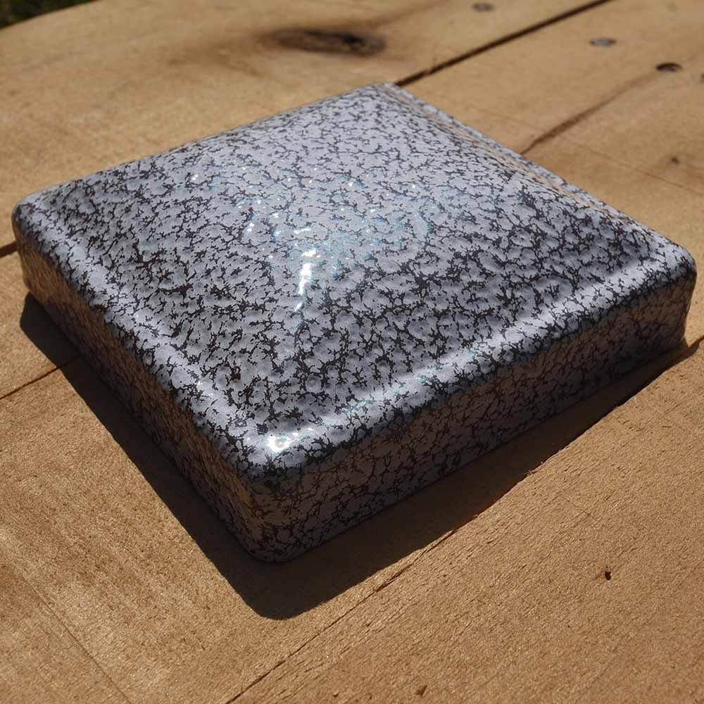 This is a textured vein powder coating with a chameleon/color-shift color vein/inset. These colors shift from greenish-yellow, green, and blue at different angles. This coating’s vein color is subtle in low-light environments and vibrant in the light and sunlight. Pictures and videos cannot do this color justice, so order a 4 0z. tester or swatch to see this coating in person!