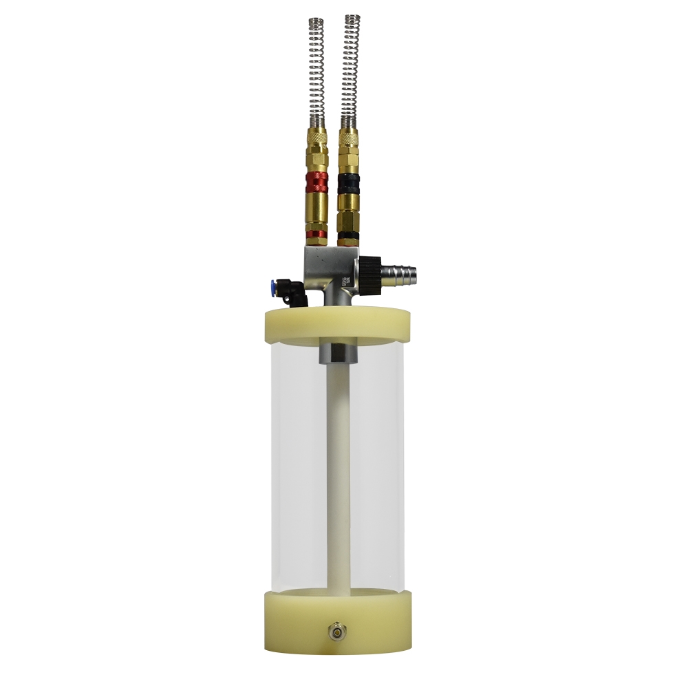 The Kool Koat Powder Keg is a fluidizing hopper that produces a smooth powder flow from the hopper to your unit and to your part. Fluidizing hoppers far out perform standard hoppers offering even better control and extended durations of even powder flow. This universal hopper can be fitted to our Hyper Smooth Coating Systems, Kool Koat Coating Systems, or most other powder coating systems on the market. Your powder coating system must have two independently controlled, trigger-activated air outlets in order to use a fluidizing hopper. With Hyper Smooth and Kool Koat systems, you will have to add a third regulated air line for the “fluidization” inlet on the hopper.