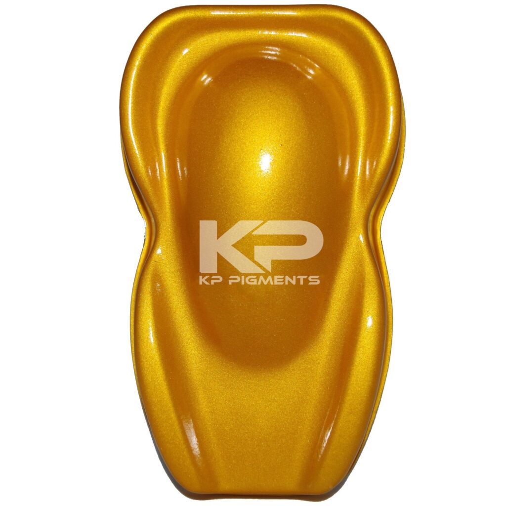 A fine deep gold pearlescent pigment that finishes to a smooth pearl sheen. Pictured over a black base coat. Use .25 – 3% Ratio of KP Pigment to Clear.