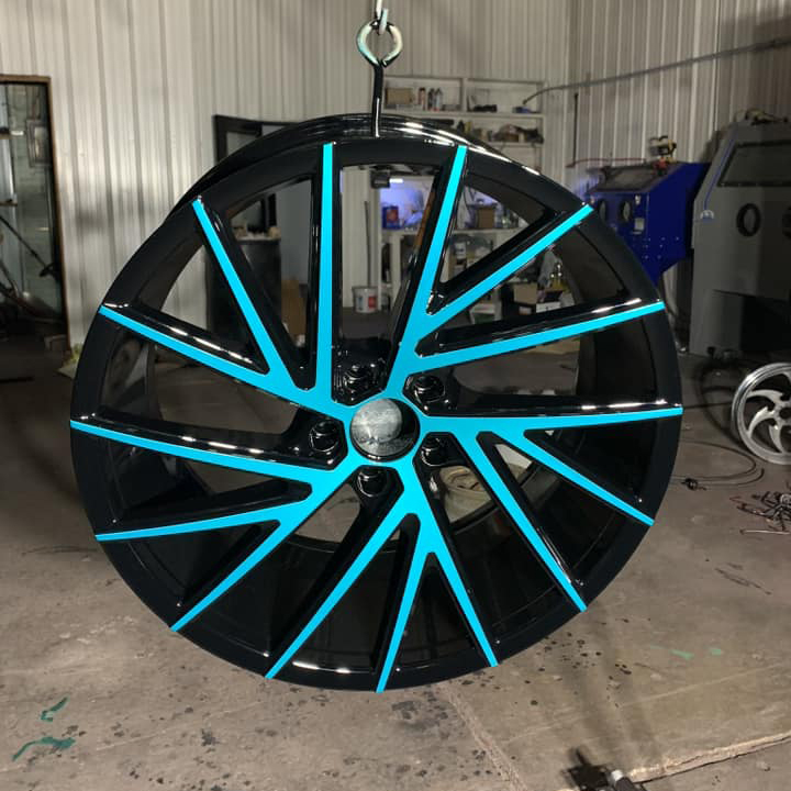 Our Candy Teal with shimmers added. This product requires a silver or chrome base coat. Suitable for interior and exterior use.