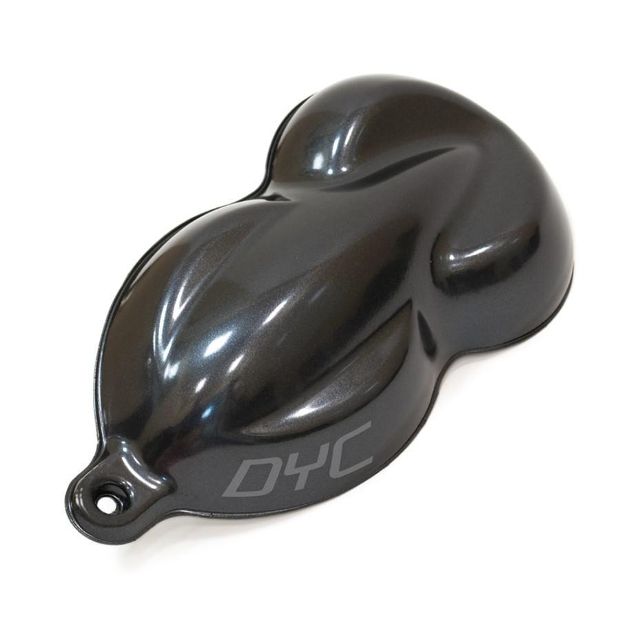 A grey pearl pigment with a smooth pearlescent sheen and a nuetral silver down-flop. Pictured over a black base coat. Use .25 – 3% Ratio of KP Pigment to Clear.
