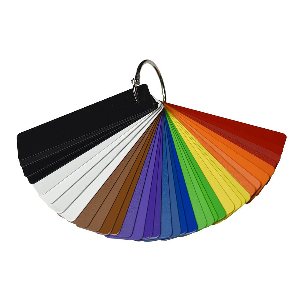 This swatch set comes with all the Super Series color panels offered by Columbia Coatings organized on a metal ring.