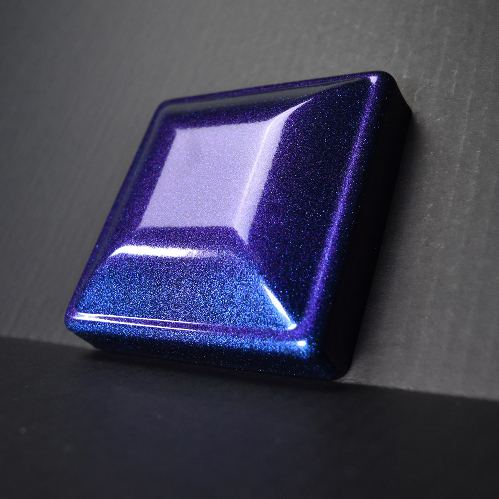 This is a high gloss clear coat with a heavy amount of color-shifting, metallic flakes. These vibrant flakes change between blue, purple, violet, and orange.