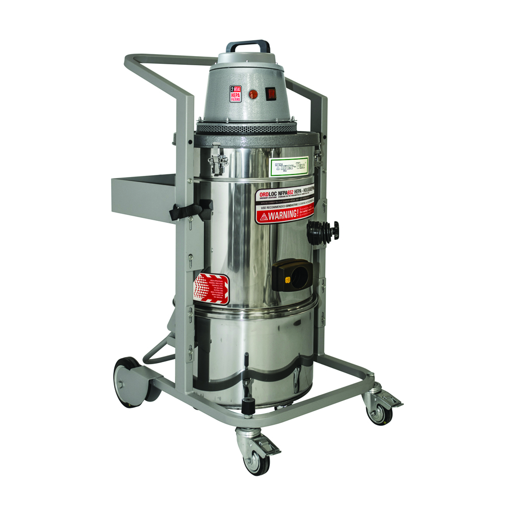 - HEPA filter with an efficiency of 99.995% at 0.3 micron. Tested IEST-RP-CC001. H14 by MPPS method as per EN 1822 and OSHA compliant. All of our HEPA vacuum systems are aerosol leak tested before leaving our facility – included