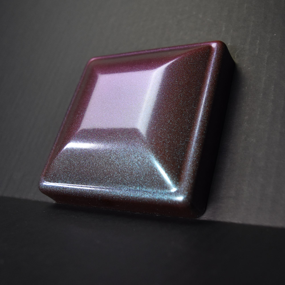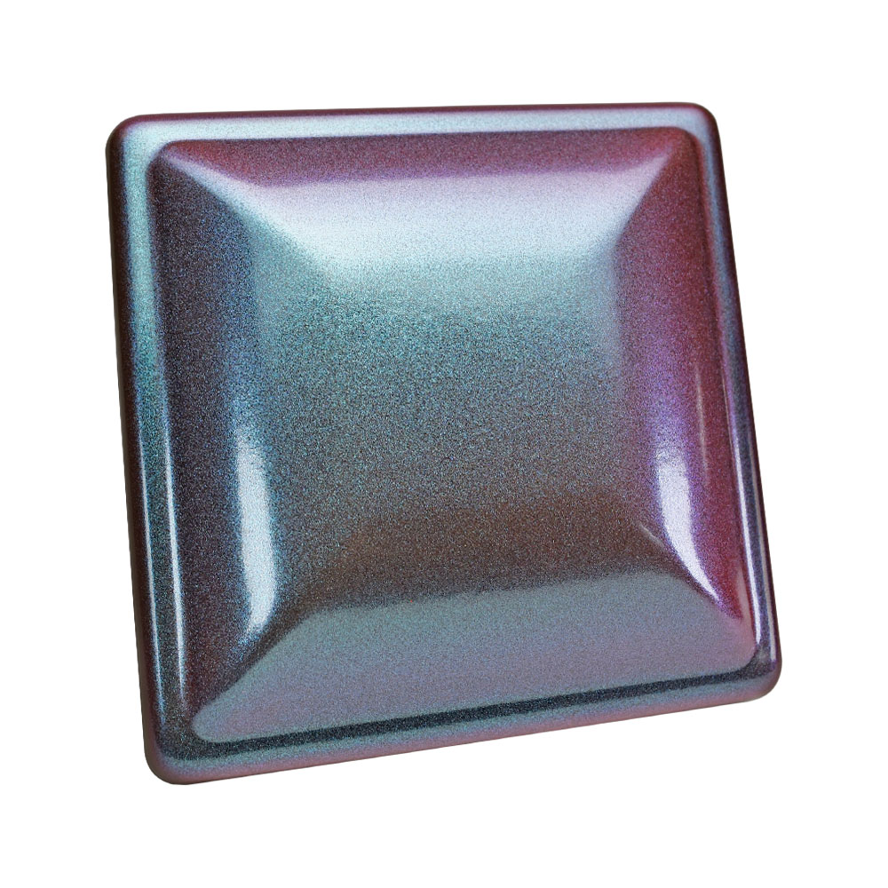 This is a high gloss clear coat with a heavy amount of color-shifting, metallic flakes. These vibrant flakes change between cyan, green, blue, purple, red.