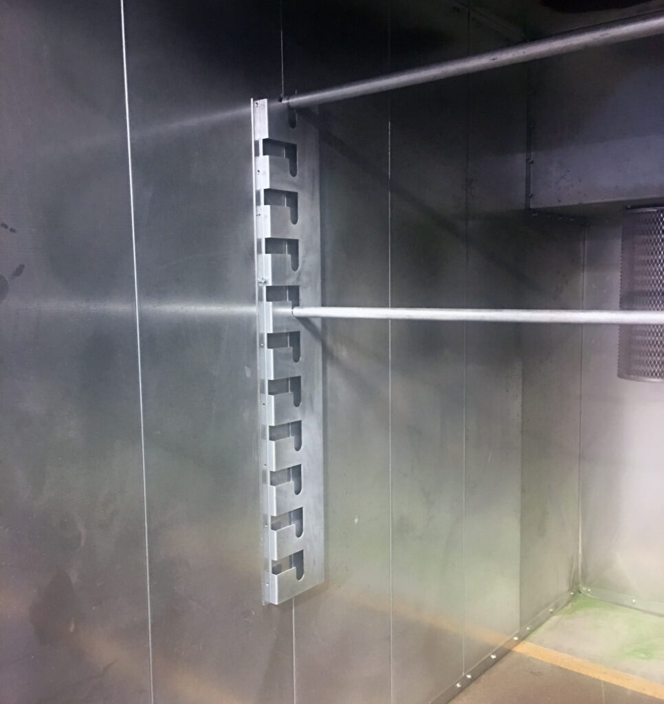 Vertical Hanging Racks for our Kool Koat Ovens and Booths. Set includes (1) left and (1) right side bracket (¾” pole not included).