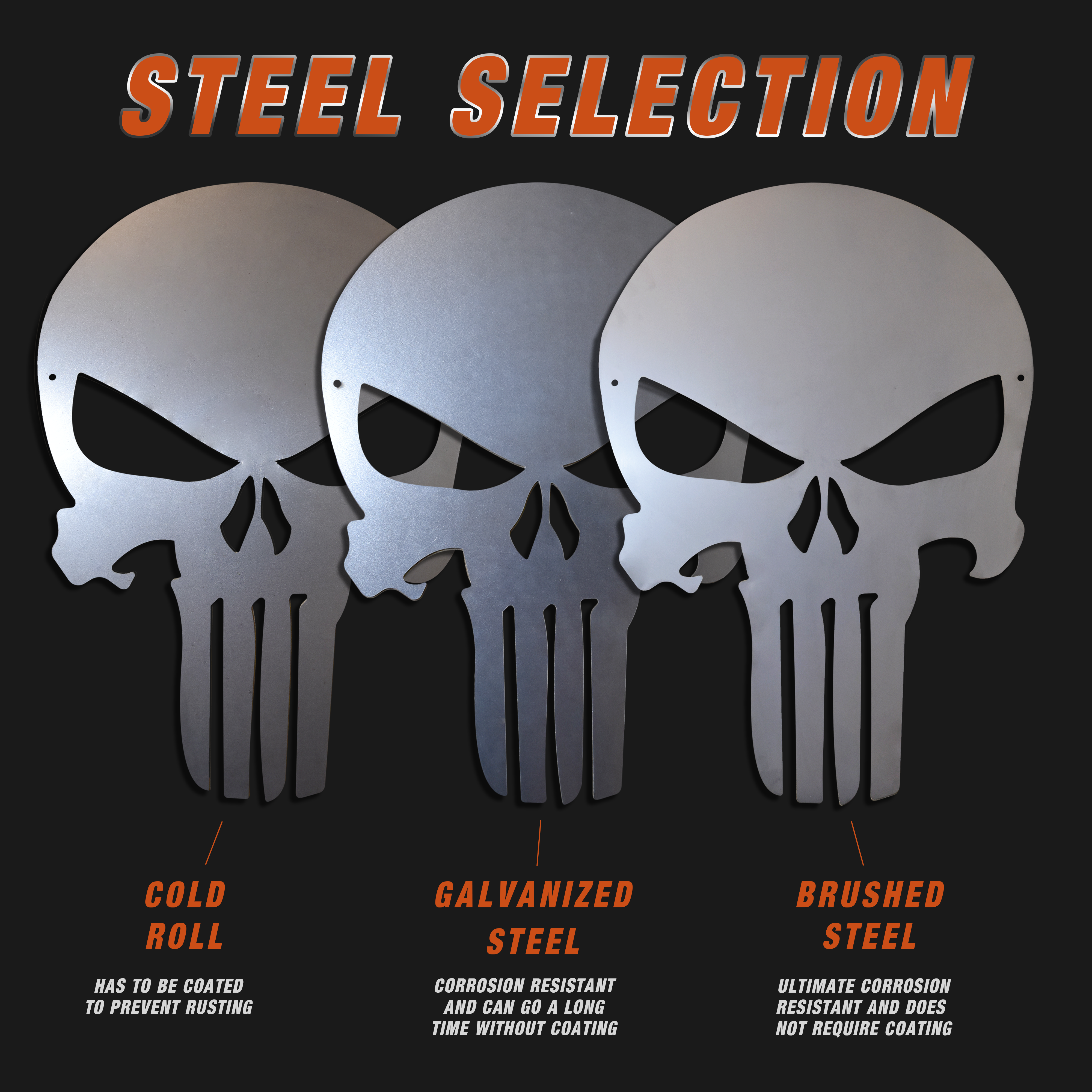 Choose from Galvanized, Cold Rolled or Brushed Stainless Steel.
