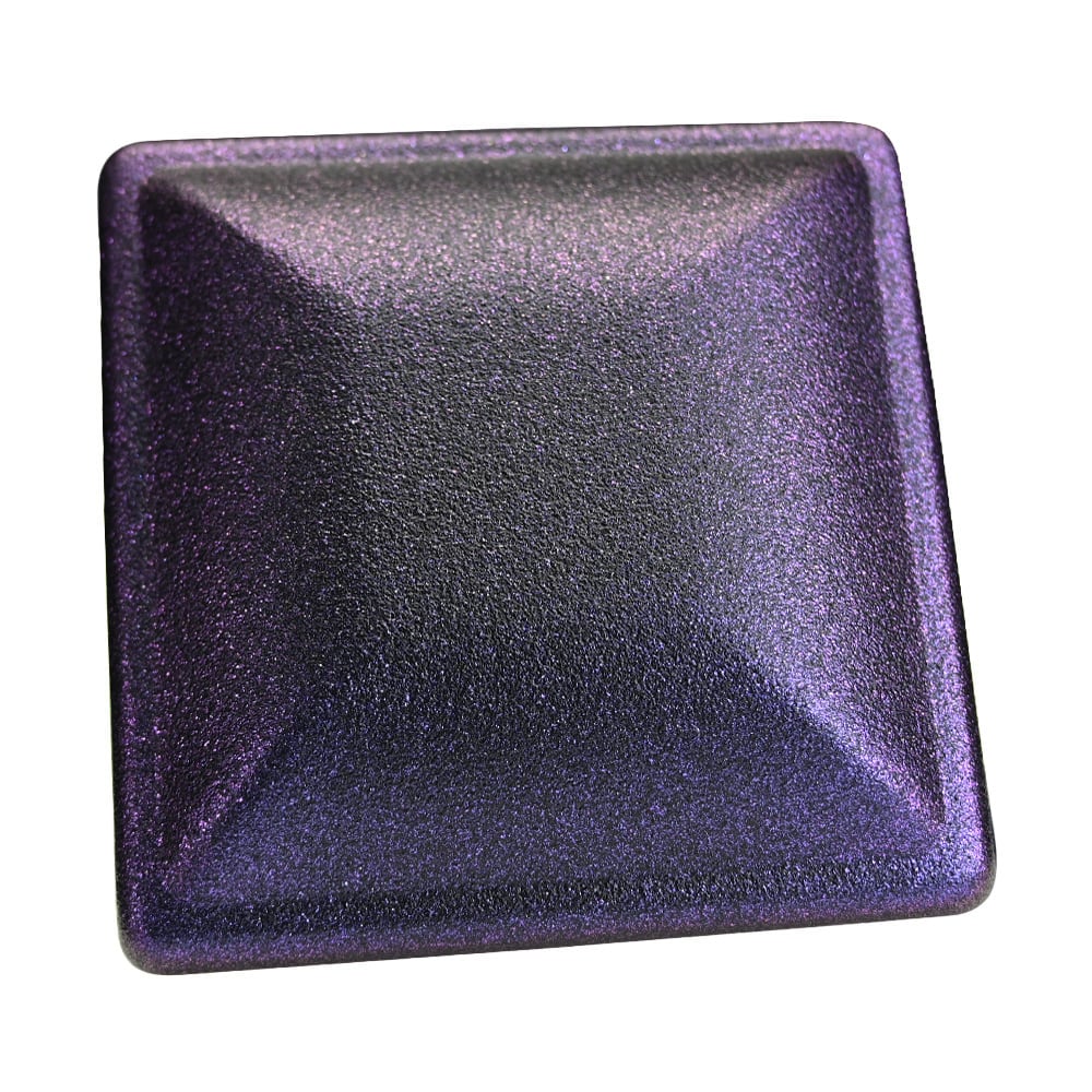 This is a dark sinister mini texture coating with color-shifting metallic flakes. These color shifting flakes change between violet, purple, blue, and reddish-orange colors. Pictures and videos don’t do this color justice, so order a swatch to see this coating in person.